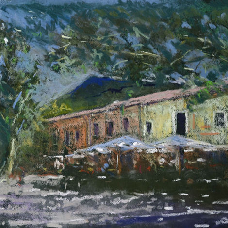 The museum, located across the square (and behind the vantage point of the painting), is attracting some attention. It is located in the old Monastery La Cartuja de Valldemossa, where Chopin and his French mistress, George Sand, spent the winter of 1838/39. Chopin’s piano may be silent but today he generates a different kind of music, tills ringing up sale after sale of memorabilia.